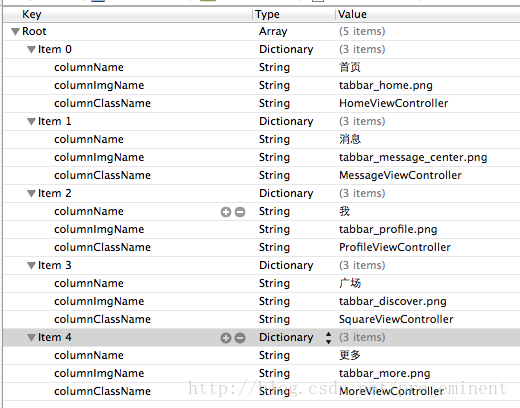 Dock里面的五个栏目按钮的数据来源ColumnList.plist