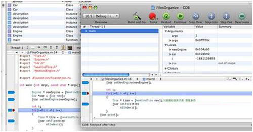 Xcode除了有GDB外,还有一个微型调试器,它是一个浮动窗口,通过它我们能接跳过GDB调试器做一些简单的调试工作。