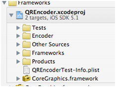 注意:二维码显示的时候有可能会因为图像的大小而做调整,所以需要包含系统库QuartzCore.framework