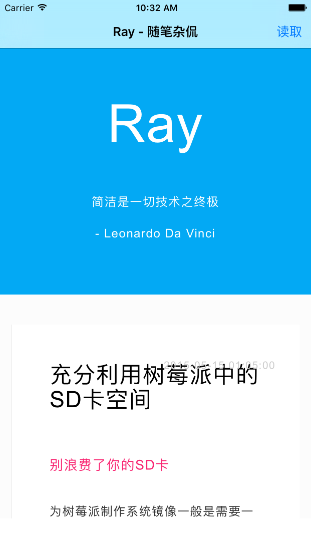首先我们要准备一个目标网页,这里就以我自己的博客来做一个示例(http://ray.dotnetage.com)。在 App 中用WebKit打开是这样的