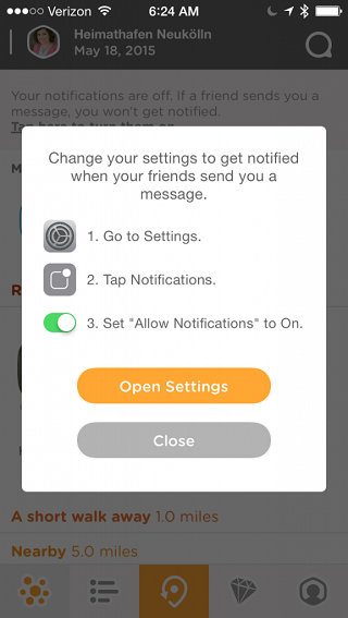 大多数应用程序仅仅是弹出一个包含操作指令的警示窗口,如“进入设置>隐私>位置>OUR_APP”。例如,推特的应用程序有一个更为精致和友好的指示对话框,所以我就把它当做一个例子来使用(可惜大多数应用程序都会有一个非常糟糕的版本)。