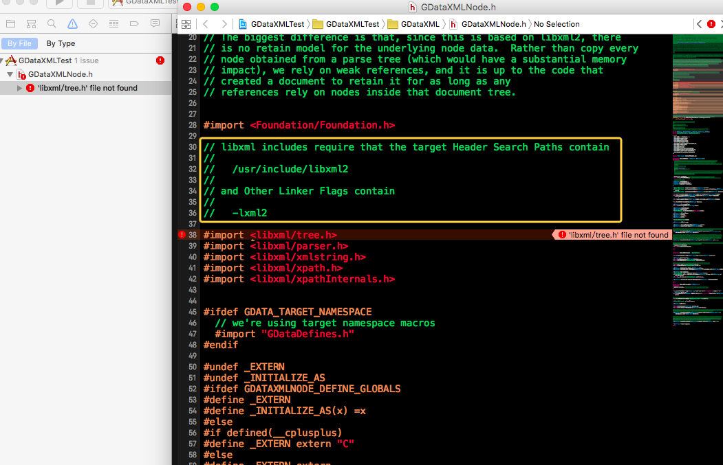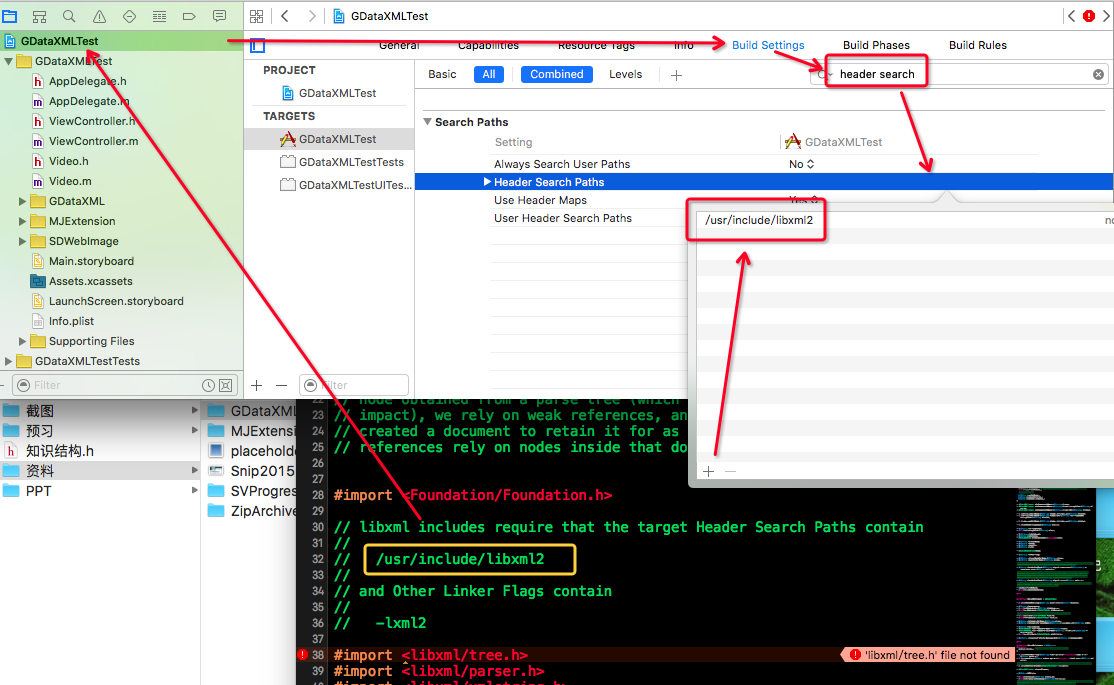前言:GDataXML是google基于C语言写的第三方框架,该源码文件就一个类,看其源码,基本使用了C语言的底层的很多lib编译库代码,所以刚导入使用,会报错提示需要设置导入需要的链接库。 另外,该第三方框架并没有纳入Cocoapods,所以通过pod搜索不到这个框架。