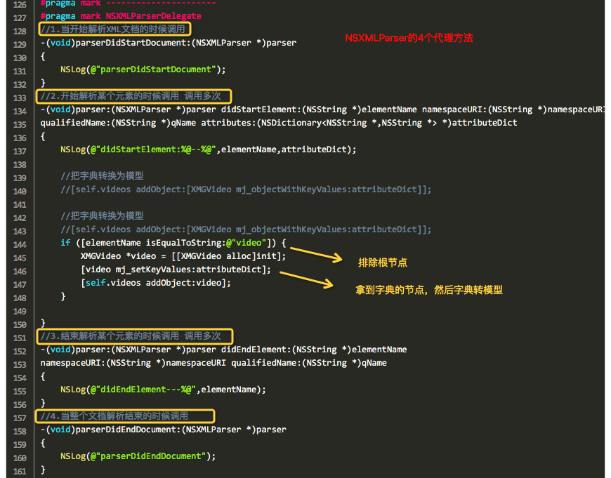 6-1、将苹果原生的NSXMLParser通过代理方法SAX解析XML的方式封装在一个普通的NSObject类中。