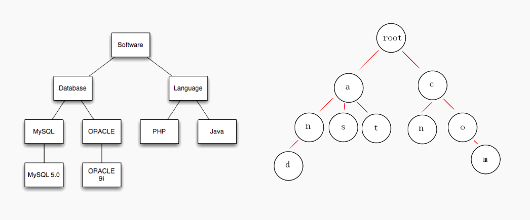经典数据结构中的各种树状图是一种典型的树形结构:一颗树可以简单的表示为根, 左子树, 右子树。 左子树和右子树又有自己的子树。
