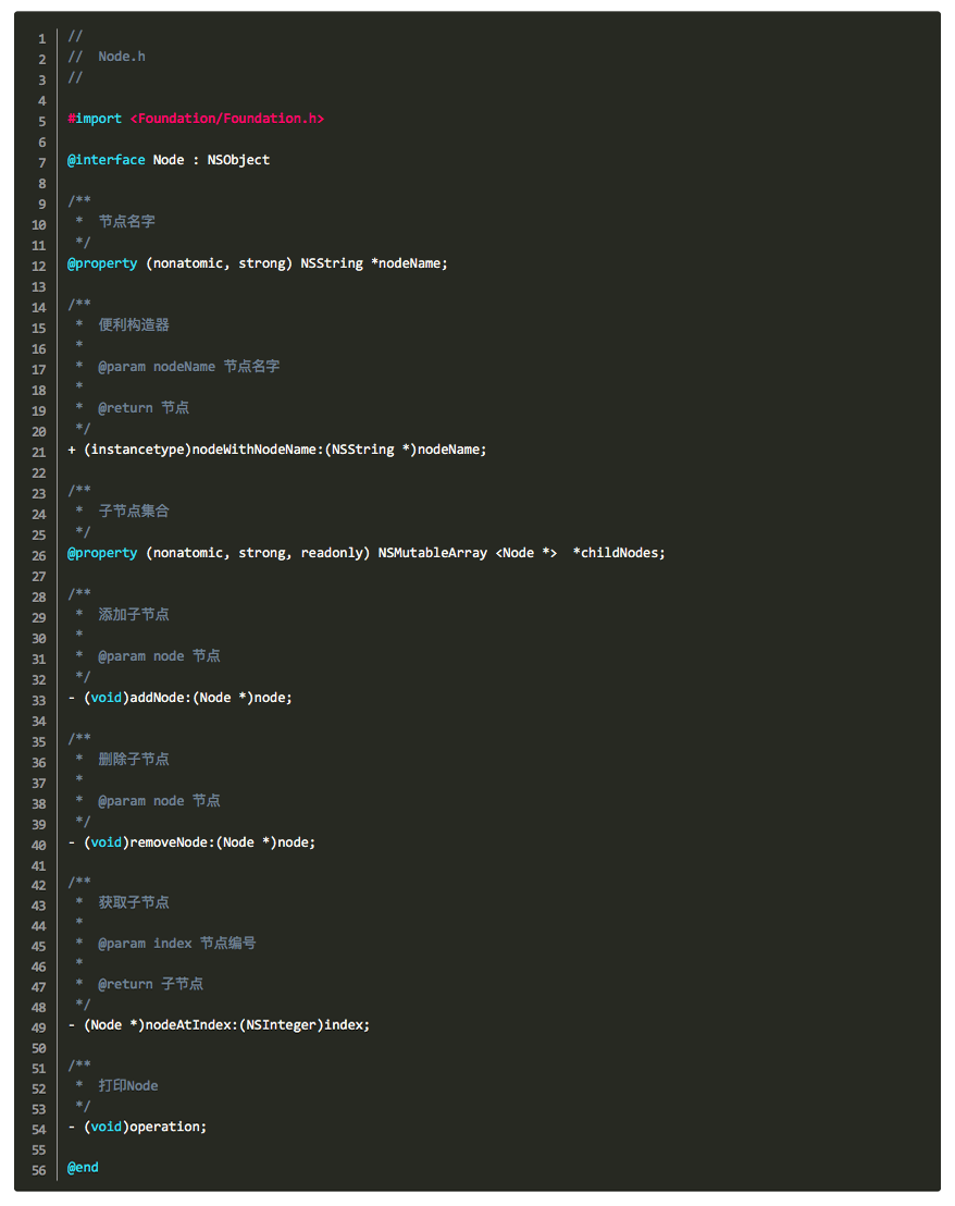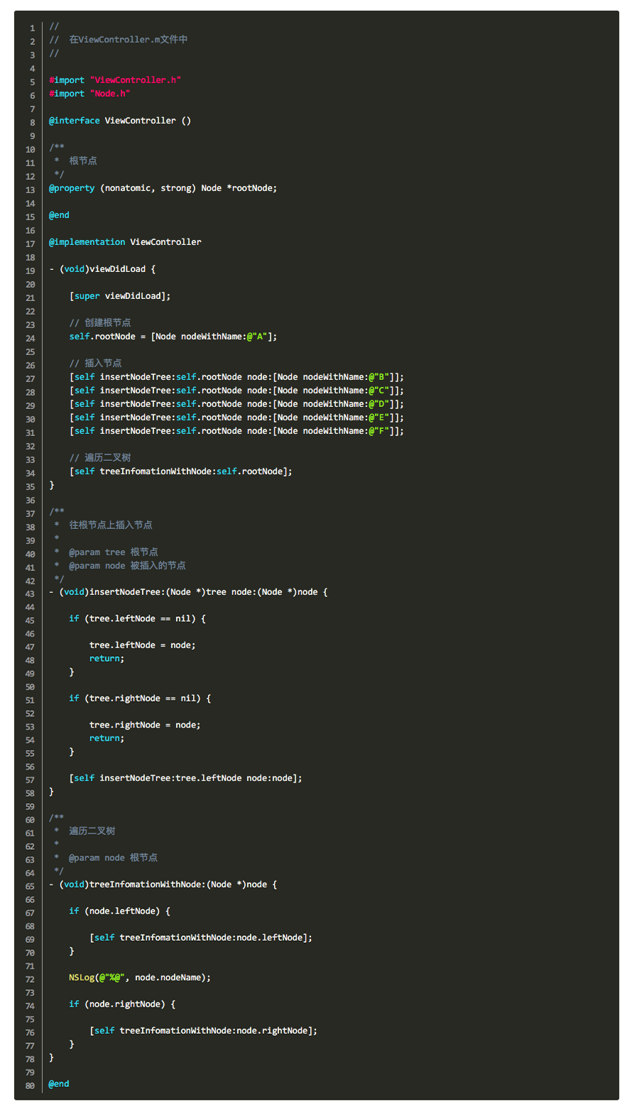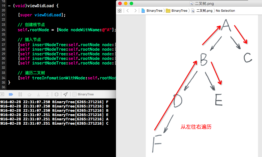 1-2、然后我们在ViewController.m去使用这个Node节点类来实现上面的二叉树