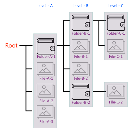 关于文件夹系统,其实在应用中或者是PC端应用中都很常见,一个文件夹包含多个子文件夹和子文件,而子文件夹又包含它的子文件夹和子文件,依次层次往下递归。