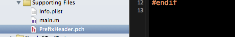 因为用的是XCode6, 上面默认是没有pch文件的,如果我们想使用pch文件,需要手动添加,添加步骤如下