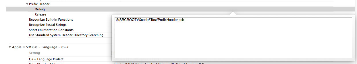 (2)在Prefix Header下面的Debug和Release下添加$(SRCROOT)/工程名/pch文件,入下图