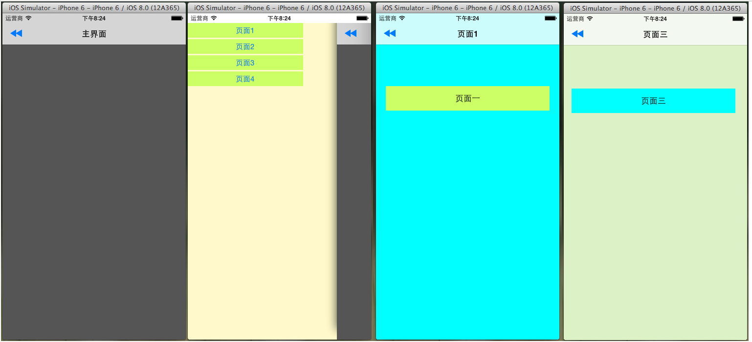 4.在导航页点击不同的按钮使用PPRevealSideViewController跳转到不同的controller