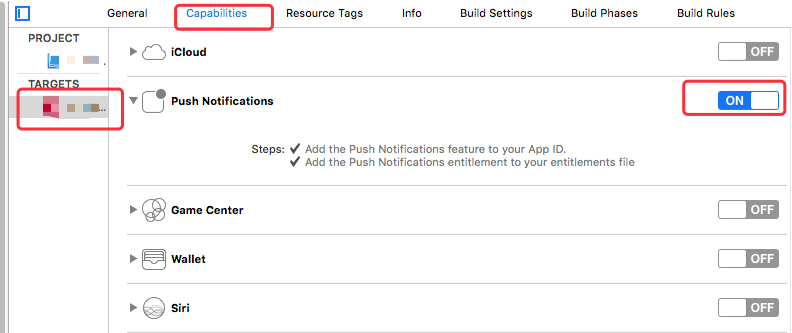 打开Push Notifications 开关