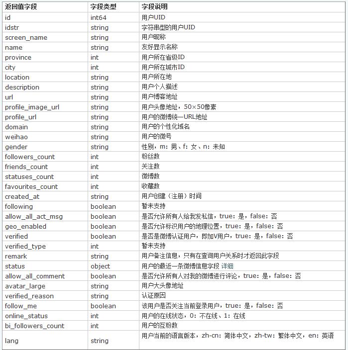 返回字段说明