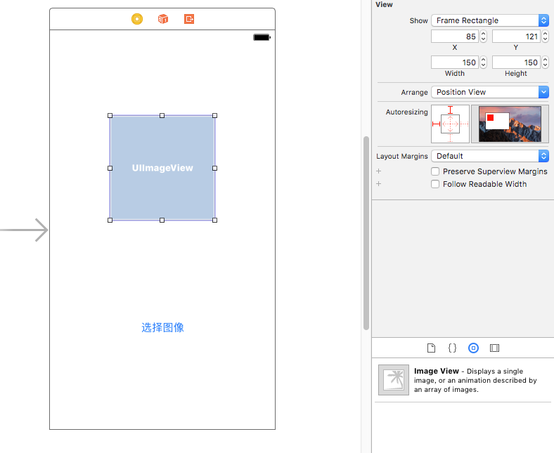 1. 使用Xcode的storyboard创建一个button和一个imageView