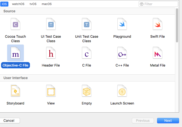 创建新文件,选择“Objective-C File”,如下图2所示: