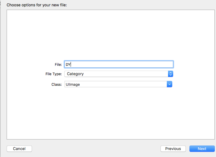 在弹出的如图3所示的对话框中,“File”写入类别的名称(本例中是DY),“File Type”选择Category,“Class”选择UIImage。然后点击“Next”按钮,将新文件保存。