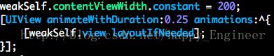 今天在做项目的时候,项目使用的是xib做的,页面中需要有个动画效果,使用UIView动画如下图: