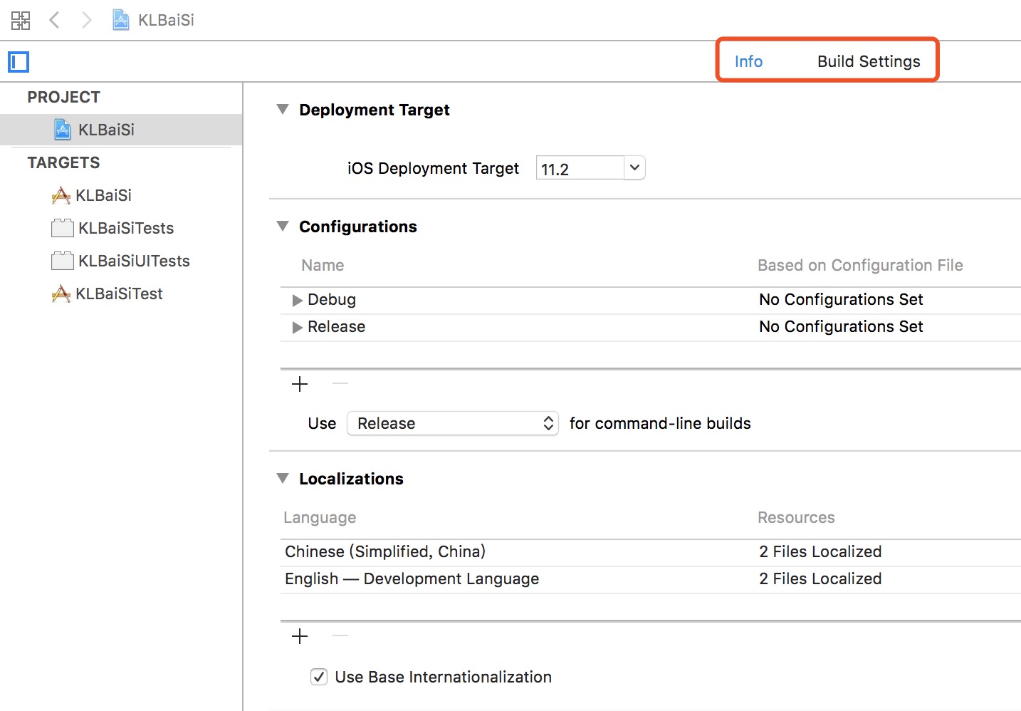 主要分为三部分:Deployment Target、Configurations和Localizations。