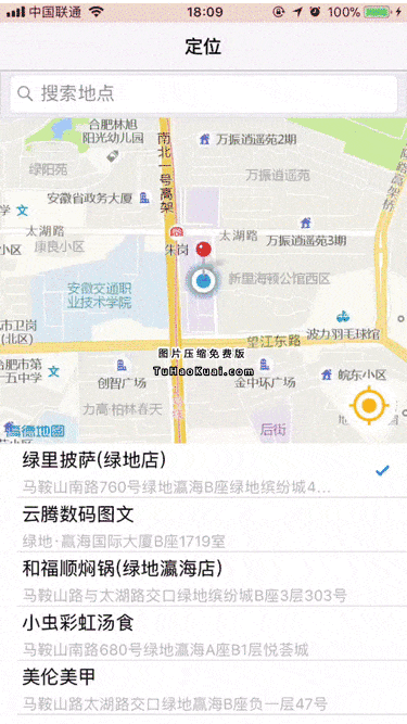 包括主动选择地图上的点然后进行附近的搜索,可自定义搜索的内容,定位成功之后用户可以获取到当前的经纬度地址等一系列信息。详细的代码有点多就不一一贴出来了,需要的同学可以点击下面的github地址去下载体验。
