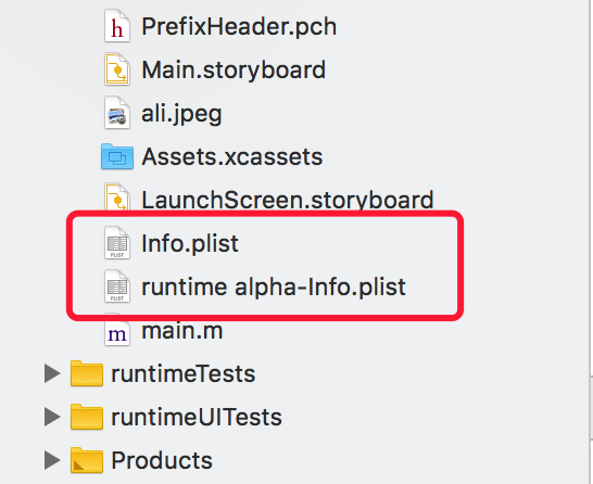 4、项目结构里面会多一个默认 target 名字的 ***.plist 文件