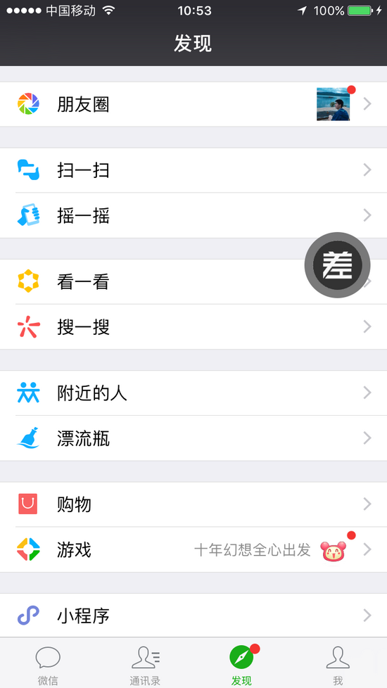 微信在最新版本6.6.7,新加了一个文章悬浮球功能。当你正在阅读文章的时候,突然有好友发来了紧急消息,你需要立即回复。又或者你刚好路过小吃店,需要临时打开微信支付,等等临时中断阅读的情况。以前只有退出文章详情页面,处理完事情之后,再挨着挨着找到原来的文章。对于我们这种重度微信使用者来说,每次遭遇这种情况,真的很蛋疼。所以,当这个功能推出的事情,立马更新了最新版本,这个功能感觉就像遇到了知心人一样,用起来十分顺手。可以通过下面的动图感受一下