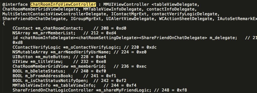 由此可见,ChatRoomInfoViewController是一个目标,它的结构是这样的: