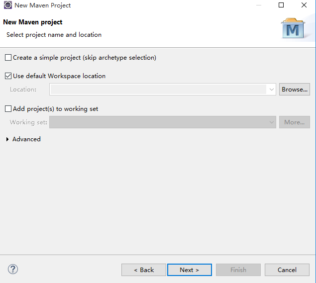 2)点击Next,选择默认工作空间位置