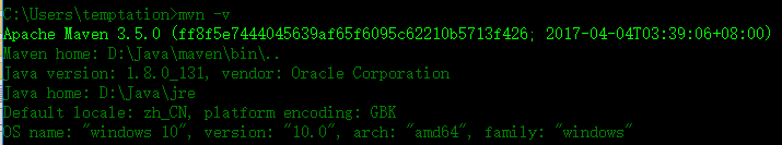 在命令行窗口中输入:mvn –v,如果看见下图则说明maven安装配置完毕