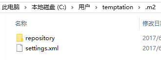 maven仓库默认位置在系统用户目录下的.m2目录中,类似下图