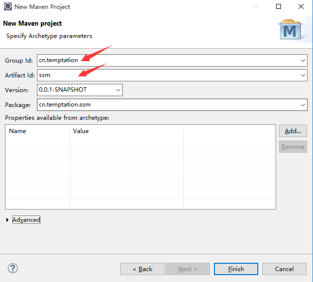 4)填写GroupID、ArtifactID