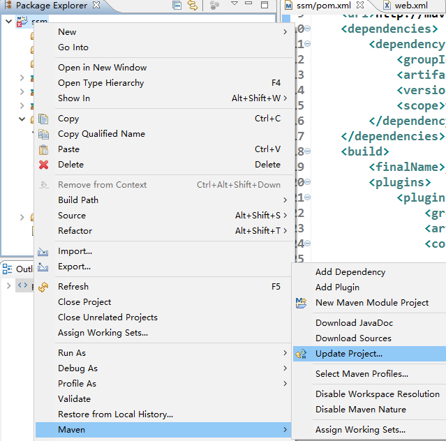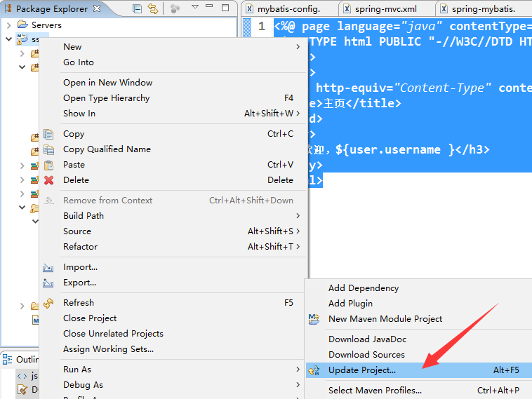 ④ 修改后,在项目上右键,找到Maven属性下的Update Project,点击之