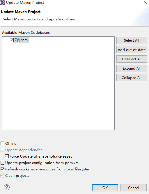 ⑤ 选择该项目进行更新,如果怕不能强制更新,可以勾选Force Update of Snapshots/Releases