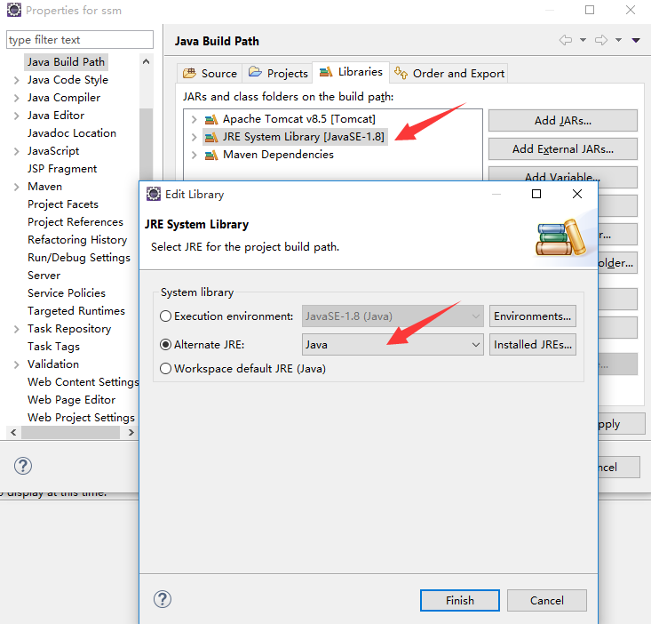问题描述:eclipse创建maven项目时,显示的JDK默认版本为1.5,实际使用的JDK为1.8,如何修改?