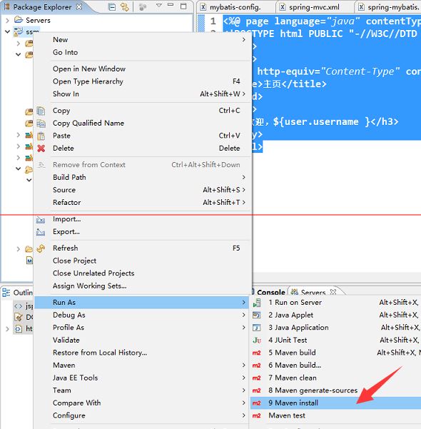 项目上右键,找到Run As属性,找到Maven install
