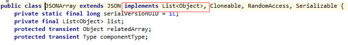 同样我们可以把JSONArray当做一个List<Object>,可以把JSONArray看成JSONObject对象的一个集合。