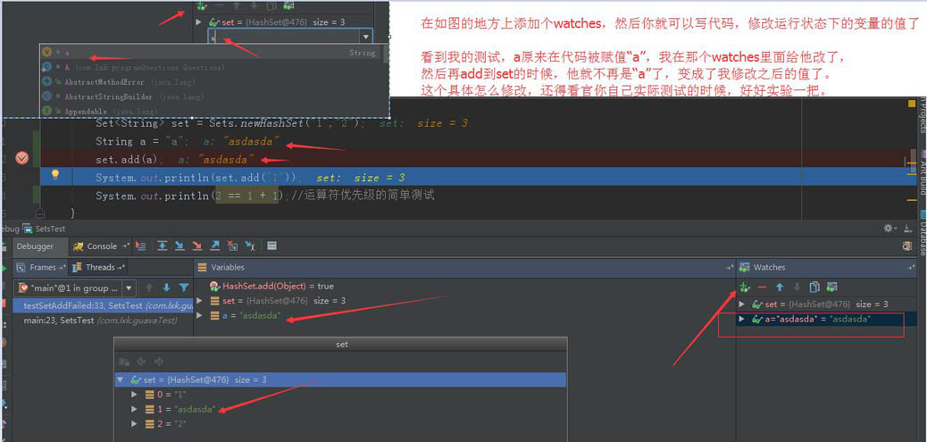 仔细看下图,就知道,怎么在实时调试代码的时候,怎么设置某些变量的值,可以看到,我上面在输入a之后,下面就有类似你写代码时候的提示,你就可以在这地方修改变量的值啦
