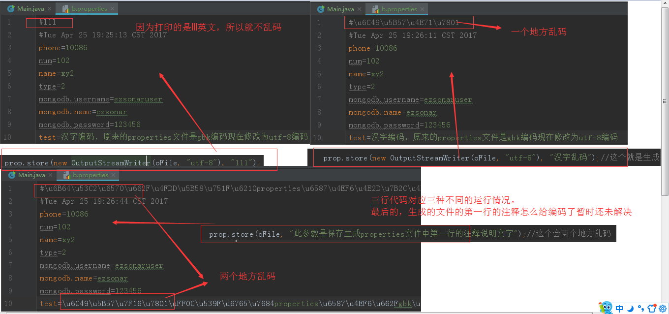 //prop.store(new OutputStreamWriter(oFile, "utf-8"), "汉字乱码");//这个就是生成的properties文件中第一行的注释文字乱码