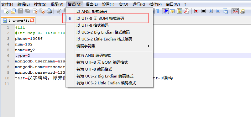 我发现写出来的properties文件的编码格式并不是简单的utf-8,而是utf-8无bom格式。证据可参见下图: