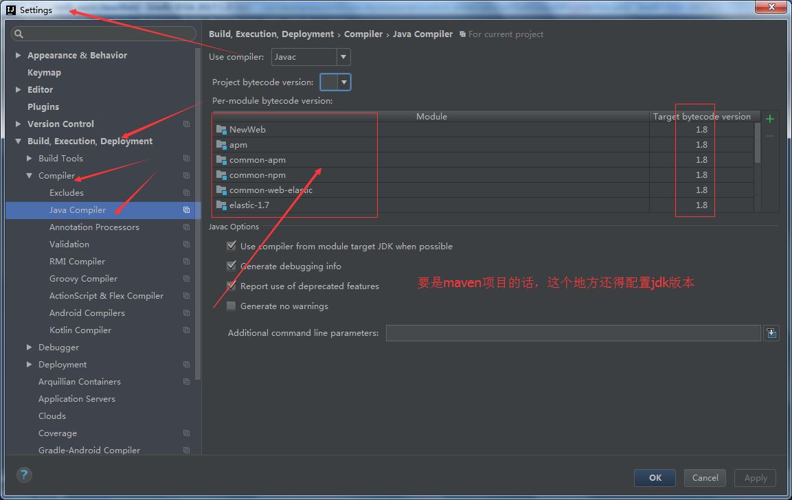 要是maven项目,多模块或者单模块的项目,下面这个地方也可能需要配置下jdk版本。