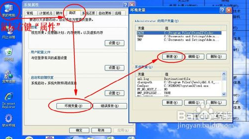 1)用鼠标右击“我的电脑”,选择“属性”->“高级”->“环境变量”->“系统变量”->“新建”。