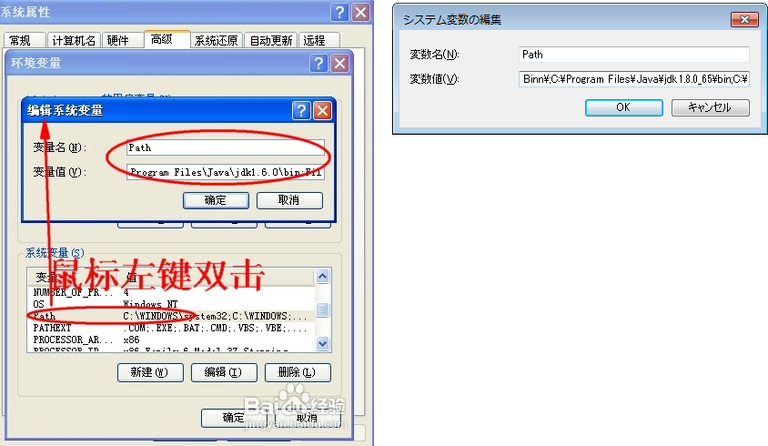4)path设置:在“classpath”设定时类似,“变量名”输入框填写“path”,“变量值”输入框填写“C:\Program Files\Java\jdk1.6.0\bin”(根据安装路径填写)。