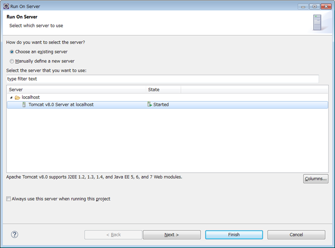 然后,在Eclipse IDE和tomcat之间建立链接。
