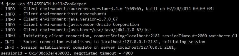 $ javac -cp $CLASSPATH HelloZooKeeper.java