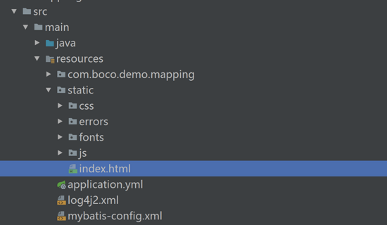 实际上本文中这种前后端分离的开发,前端开发好后将build构建好的dist下static中的文件拷贝到springboot的resource的static下,index.html则直接拷贝到springboot的resource的static下。下面是示例图: