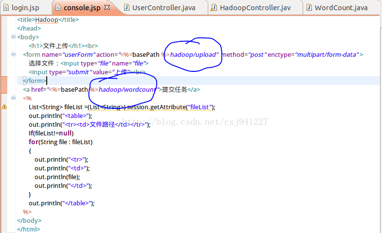 user/login中处理登录,登录成功后,【在Hadoop文件系统中创建用户文件夹】,然后跳转到console.jsp