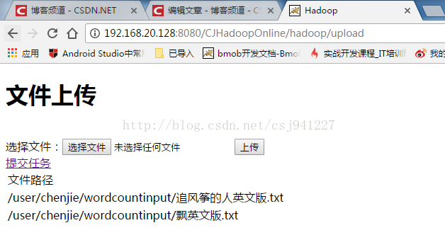 console.jsp中进行文件上传和任务提交、