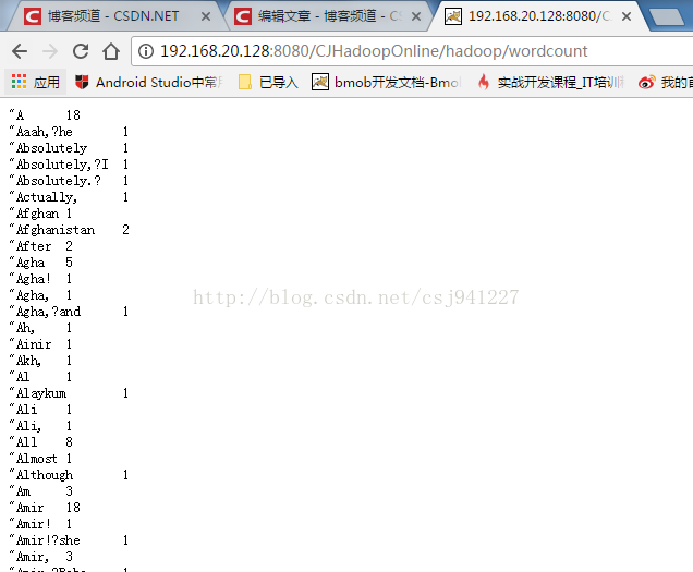 + "/wordcountoutput";//指定Hadoop文件系统的输出文件夹