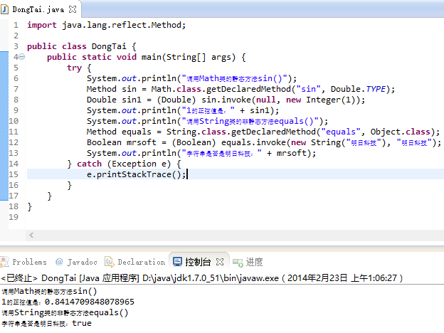 Boolean mrsoft = (Boolean) equals.invoke(new String("明日科技"), "明日科技");