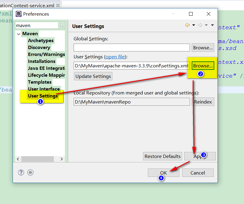 apache-maven-3.3.9→conf→settings.xml(主要是找到该配置文件),在该配置文件中进行如下操作