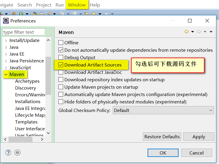 3.3配置后下载jar包时可以同时下载相关的源文件