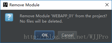 之后会弹出删除提示,“Remove Module ‘xxx' from the project? No files will be deleted.”