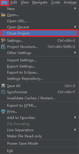 在手动删除文件之前,先选择 IDEA 的 File 菜单,选择Close Project关闭项目